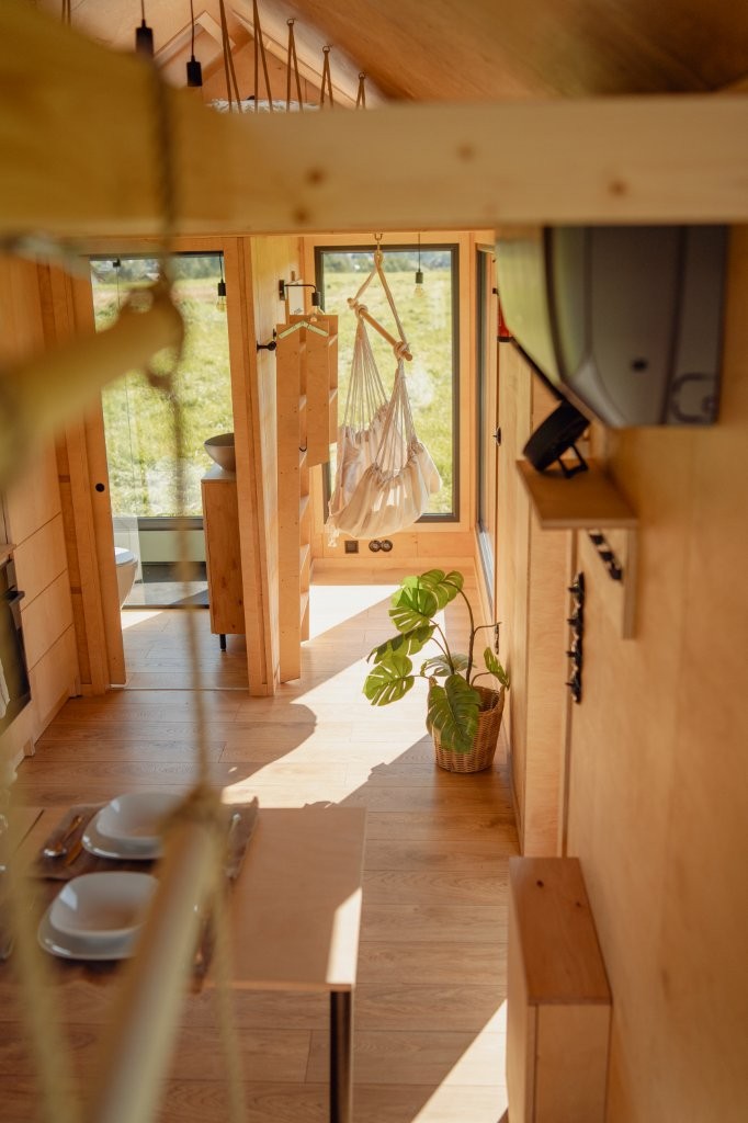 W tiny house strefowanie często odbywa się bez ścian, za pomocą mebli, światła i materiałów. To rozwiązanie, które daje elastyczność bez utraty przestrzeni.